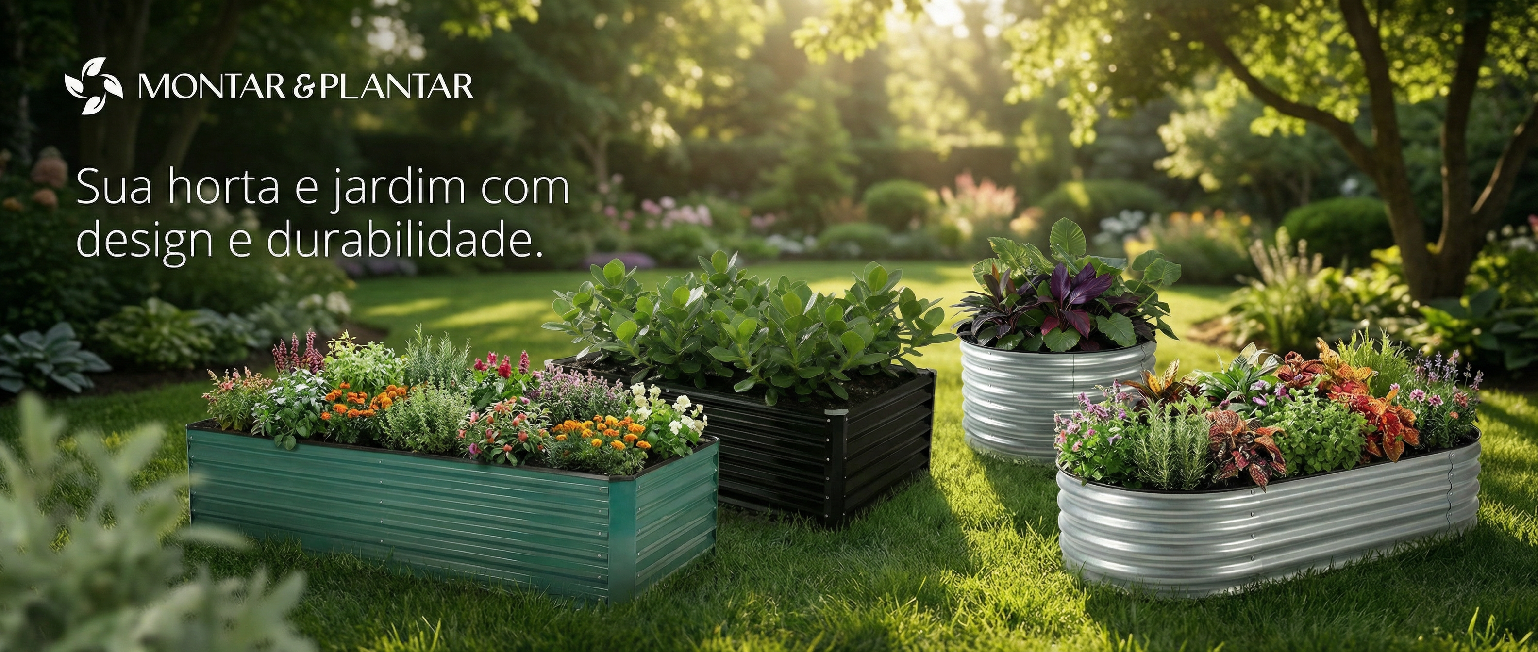 Os Canteiros Elevados de Metal da Montar & Plantar unem praticidade e design moderno para deixar horta e jardim mais organizados e bonitos no dia a dia. A altura elevada traz mais conforto no cultivo e a base aberta favorece o desenvolvimento das plantas, acomodando desde temperos e hortaliças até flores e pequenos frutos.