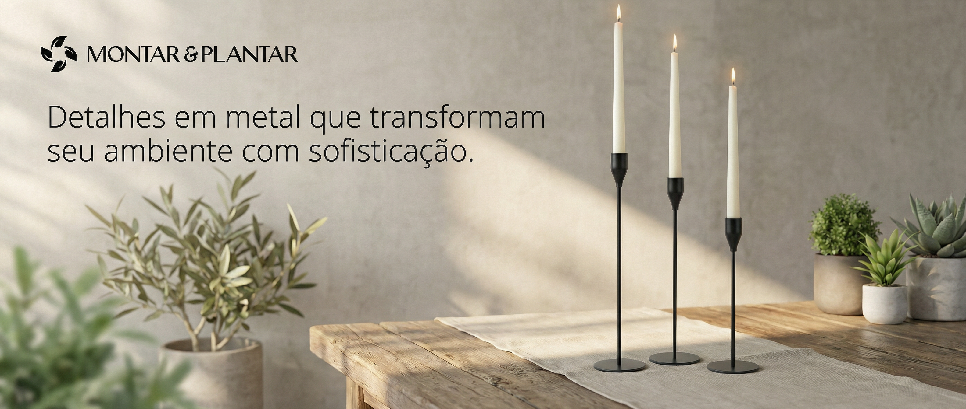 Na Decoração Montar & Plantar, o metal vira linguagem estética: peças que conversam com o verde e com a casa, trazendo presença com leveza. Entre quadros recortados para parede, figuras para o jardim e complementos como castiçais e mesas decorativas, a proposta é criar um ambiente mais harmonioso, com acabamento premium e um charme que aparece nos detalhes.