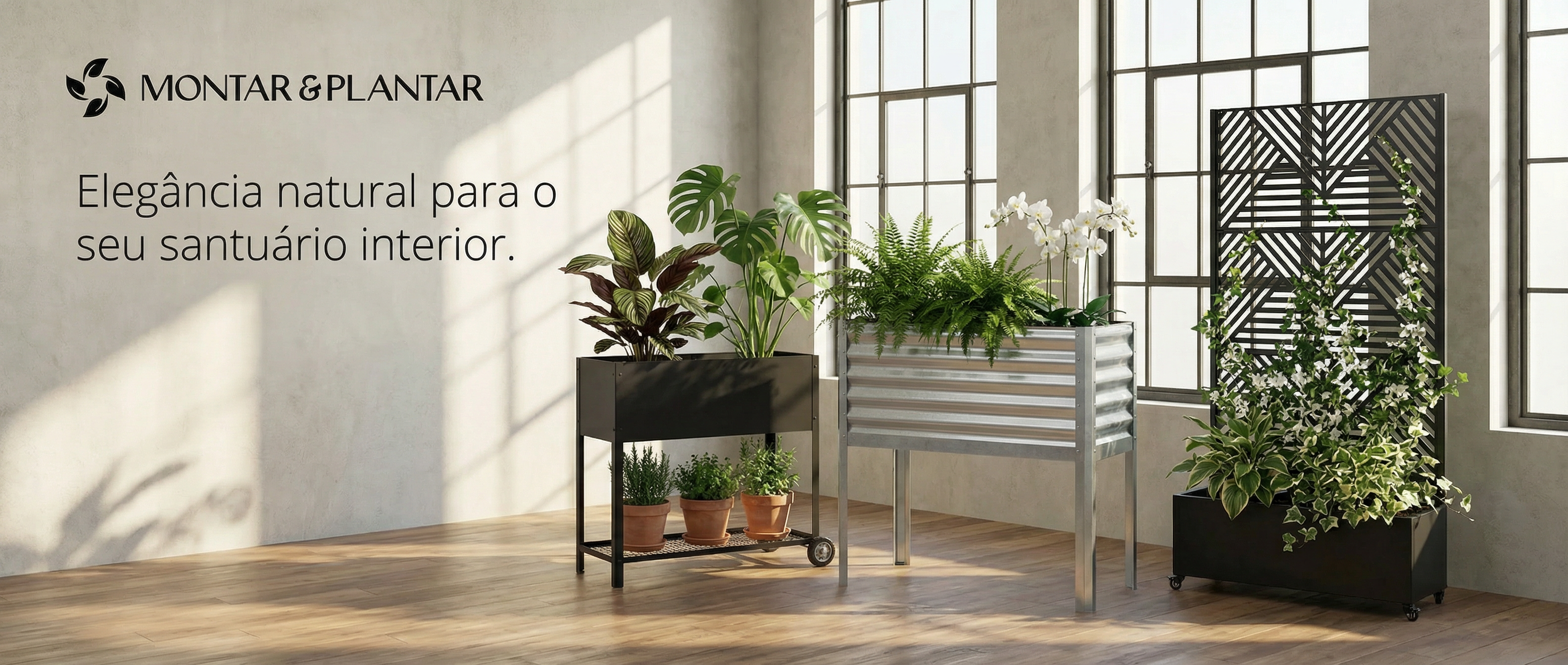 As Floreiras Montar & Plantar unem design contemporâneo e praticidade para dar protagonismo às plantas e deixar o ambiente mais organizado e elegante. A linha traz desde modelos elevados com pés até versões com rodinhas, ideais para reposicionar o verde com facilidade, além de opções com treliça decorativa para composições verticais e suporte a trepadeiras.