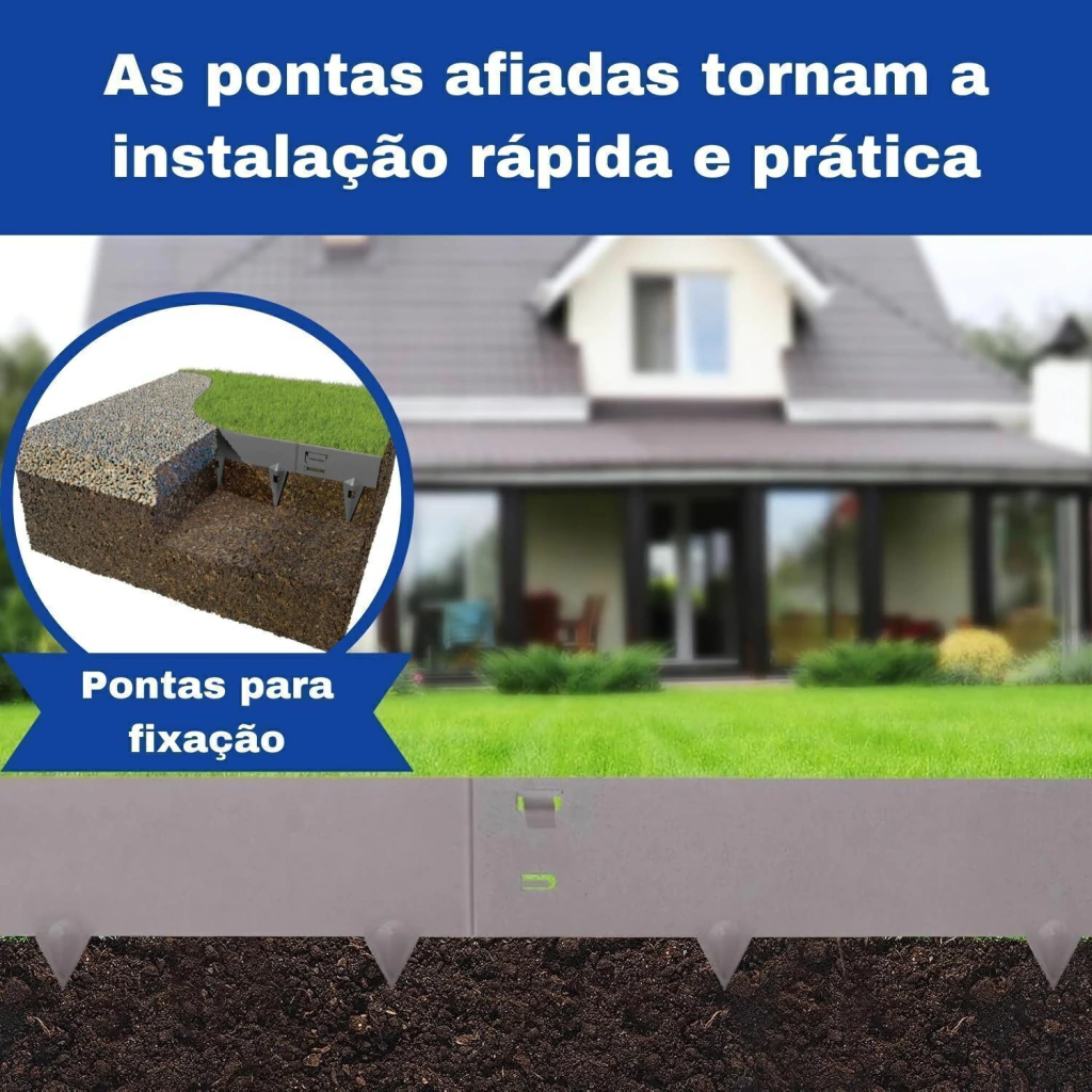 O diferencial do Limitador Metálico Flexível Jardim está em sua capacidade de criar uma barreira profunda e eficiente, impedindo que raízes de grama e ervas daninhas se infiltrem em seus canteiros de flores. Ideal para múltiplas aplicações no paisagismo, como delimitação de canteiros, trilhas de jardim, gramados e pátios externos, este limitador combina funcionalidade com praticidade de instalação. Sua altura generosa proporciona contenção adequada do solo, mantendo seus espaços verdes organizados e bem definidos, sem necessidade de estacas adicionais para fixação.